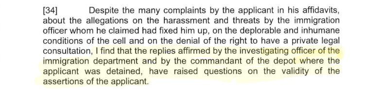 The next serious concern is found on paragraph 34 which the High Court Judge acknowledged that the sworn affidavits by the two immigration officers were enough to disregard the validity of my complaint without need of further verifications and investigation. See snippet of paragraph 34 of Permohonan Jenayah No. WA-44-178-07/2019.
